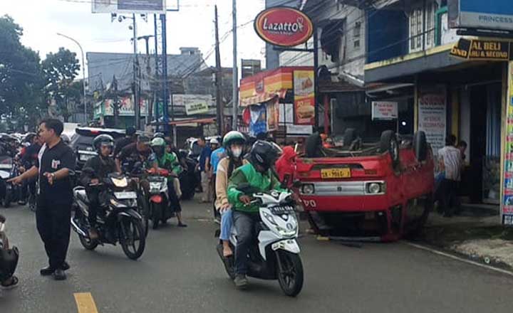 Faktaberita.id – Kecelakaan beruntun terjadi di Jalan R.A. Kosasih, Kecamatan Cikole, Kota Sukabumi, pada Minggu (16/11/2025). Insiden tersebut melibatkan kendaraan Toyota Fortuner bernomor polisi F 1712 OY, sebuah angkot jurusan Pasar Pelita–Goalpara dengan nomor polisi F 1904 VS, serta sepeda motor Xride bernomor polisi F 6245 XP. Tiga orang dilaporkan mengalami luka-luka dan harus mendapatkan perawatan medis.